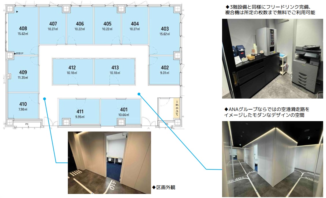 ANA WORK CABINは3階に受付と共用スペースがございます。