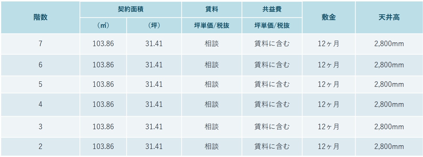 1フロア1テナント:31坪(トイレ水回り含む)にて、約13名用のオフィスです。